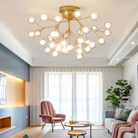 27 LIGHTS BALL FIREFLY GOLD CHANDELIER AMBER GLASS LED CEILING LIGHT HANGING LAMP – WARM WHITE