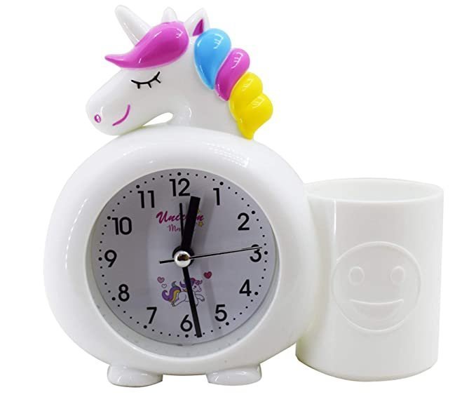 Asera Plastic Unicorn Alarm Table Clock with Pen / Pencil Stand for Kids (White)