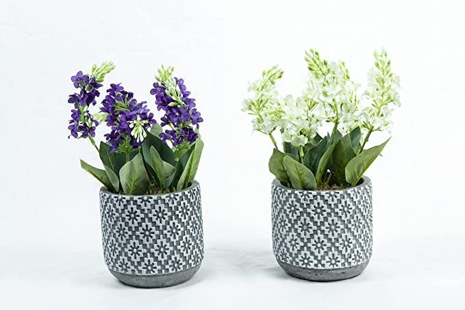 &Blooms Brazilian Lilacs Natural Looking Artificial flower in Moroccan Pot-Size-19X14 CM