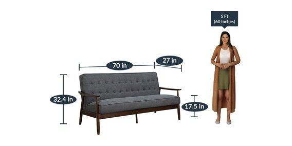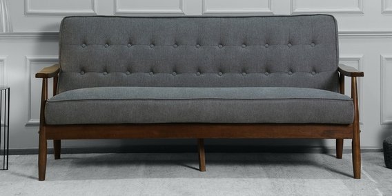 Jazmin 3 seater Sofa in Dark Grey Colour with Brown Oak Finish