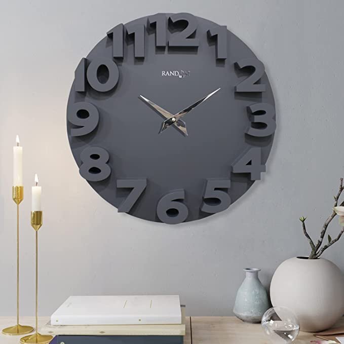 Random Wall Clock for Living Room, Bedroom, Home, Office, Kitchen| Wall Clocks for Home | Big Size Wall Clock with Glass|Designer Wall Clock for Home Decor |Quartz Movement|14- inch|RC-63338 |Grey