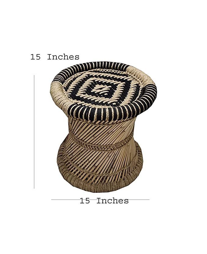 VANSHIKA Craft ! Natural Bamboo Mudda Weaving Black and Beige Flower Chair Set ! Chair with Wave Design Mudda